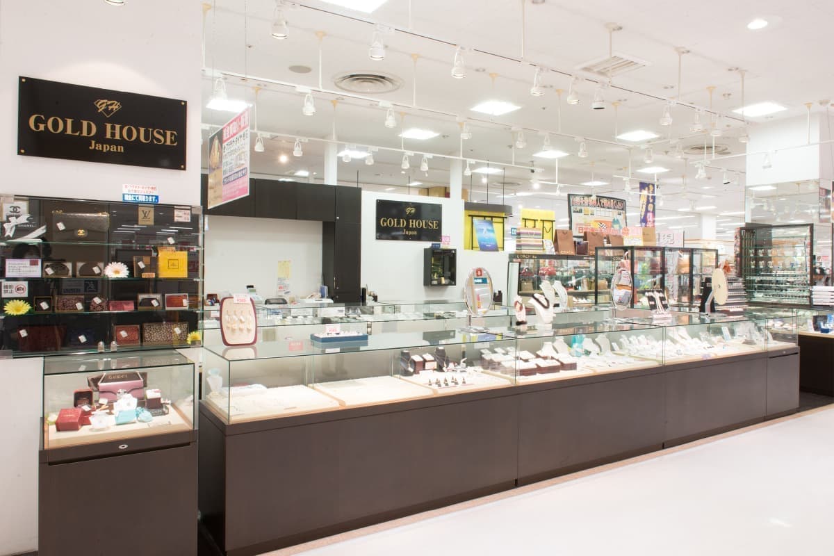 宝石・ブランド品の現金買取・販売もしております。2階エスカレーター上って正面にございますので、お気軽にお越しくださいませ。